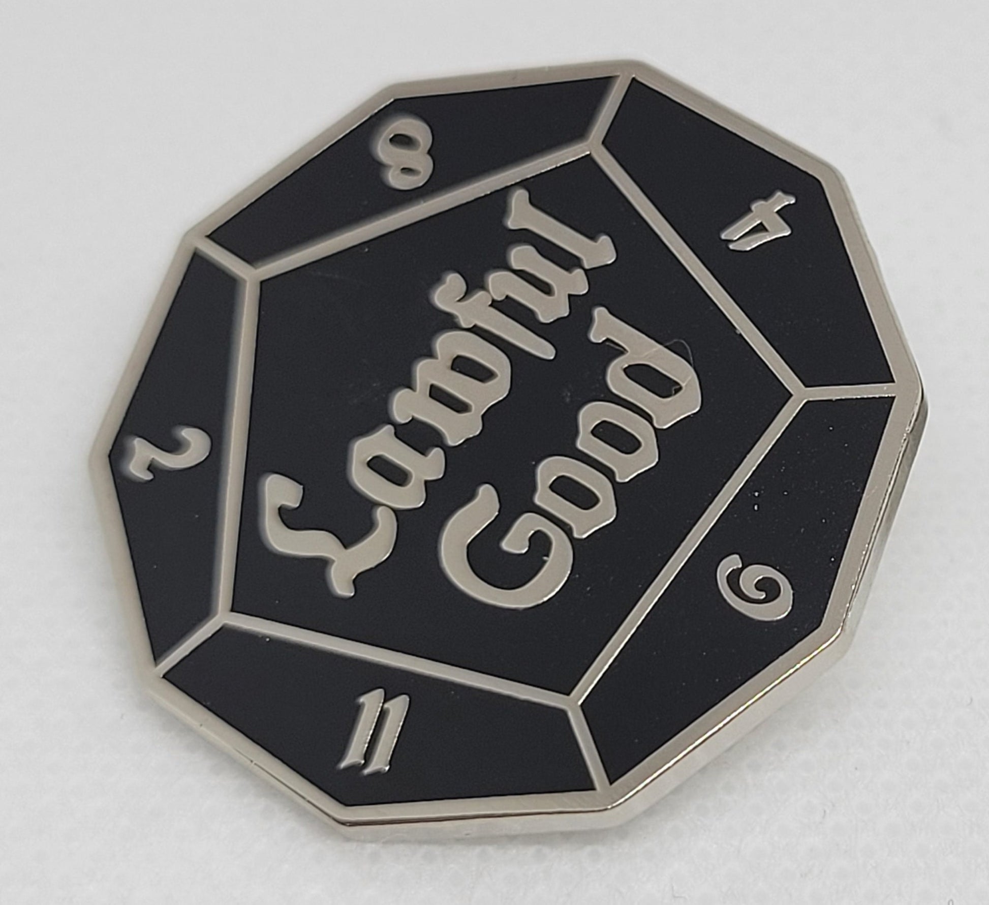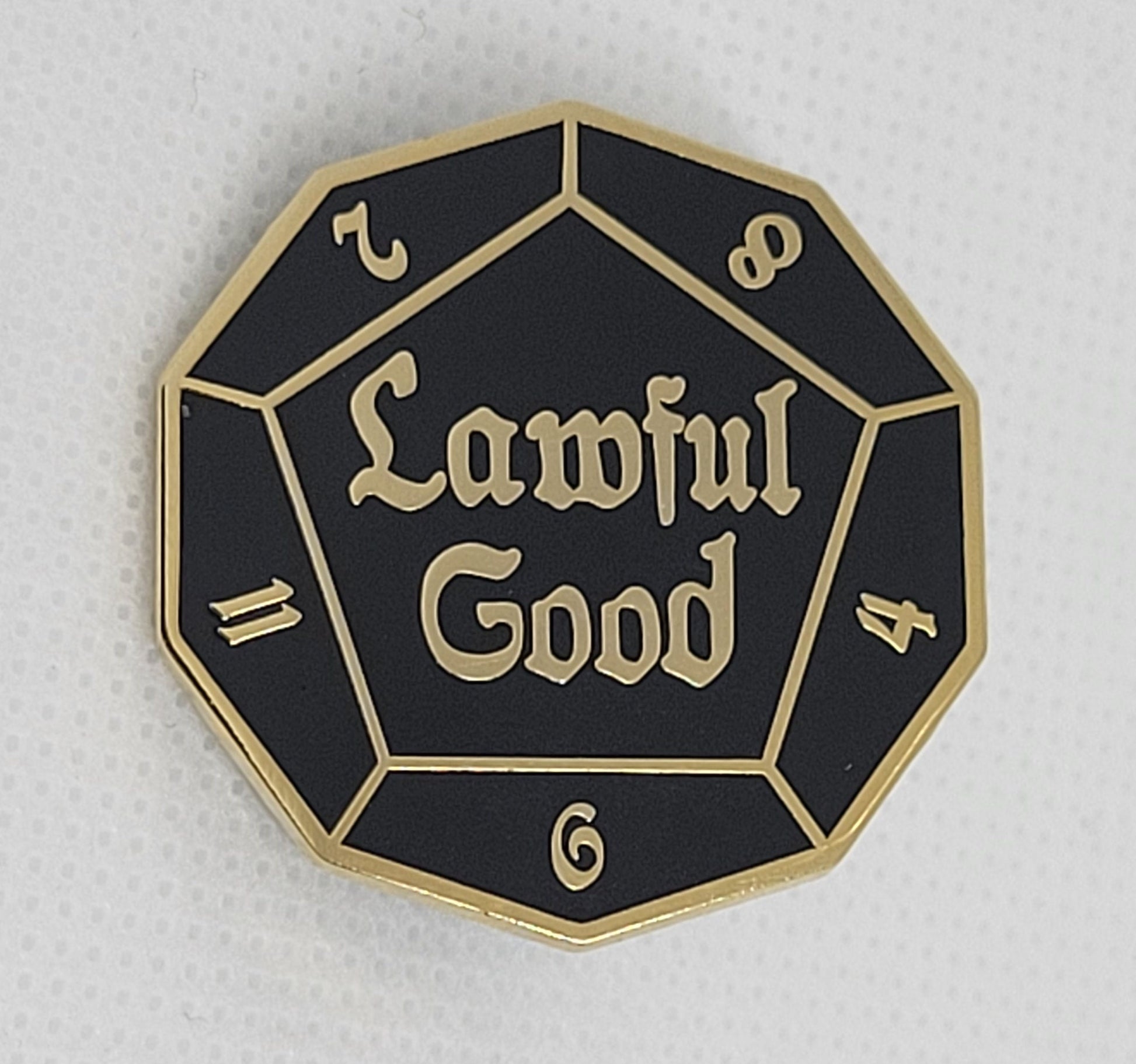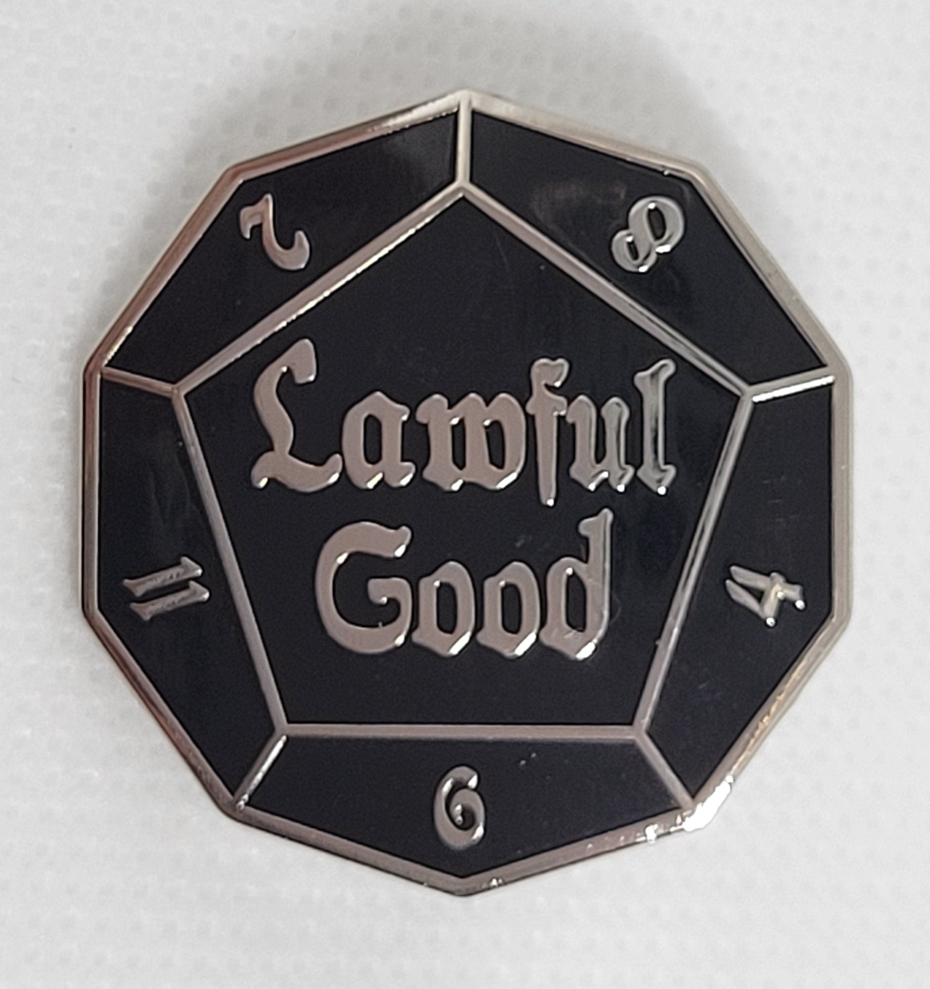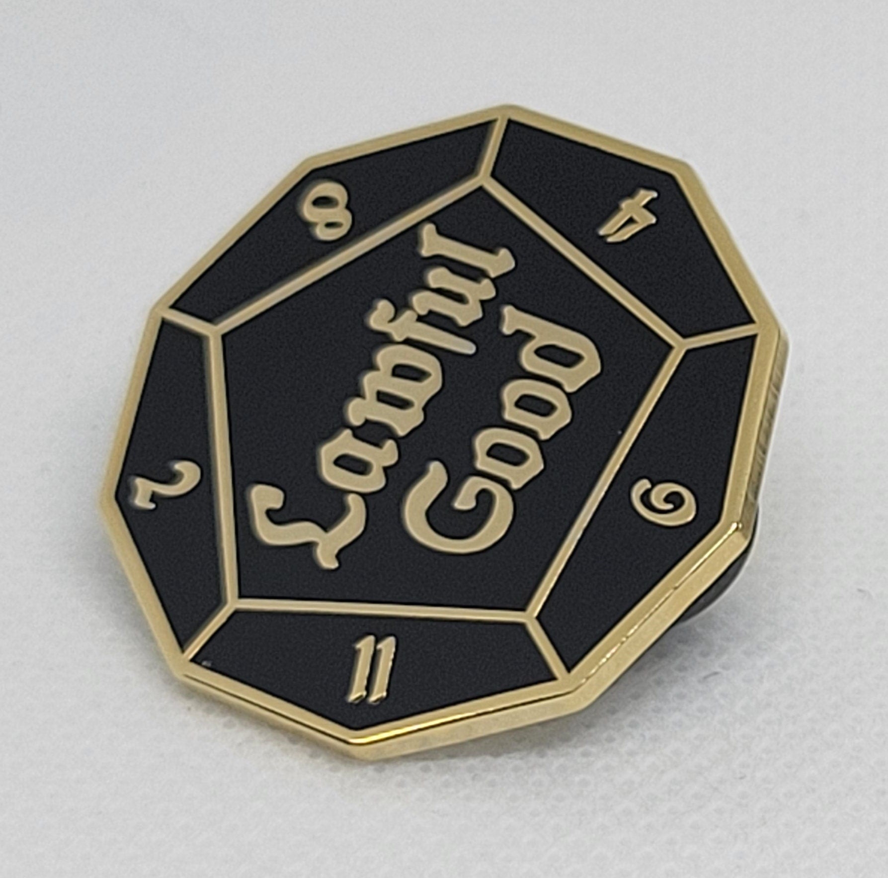 Lawful Good DnD Alignment d12 Dice Enamel Pin Silver or Gold Finish | Geeky Gift for Gamers & Fans