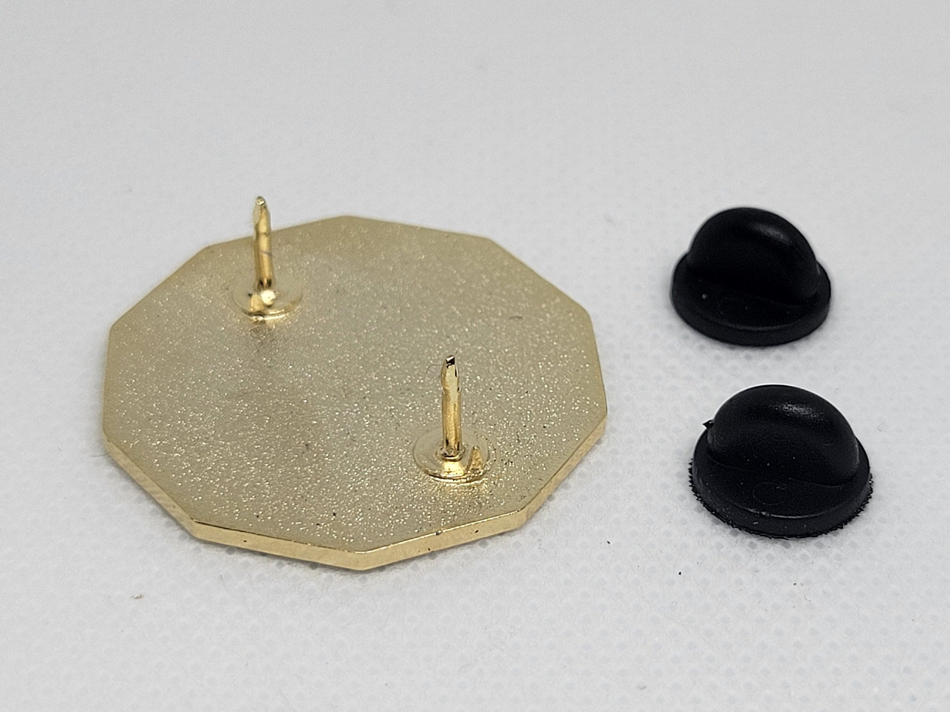Hard enamel pin, jewelry quality, two secure posts so it doesn't spin, aligned vertically so you can wear the pin on your con or work lanyard, classic d12 dice design in black and silver finish. Goes with your cosplay formal wear and your favorite gamer t-shirt.